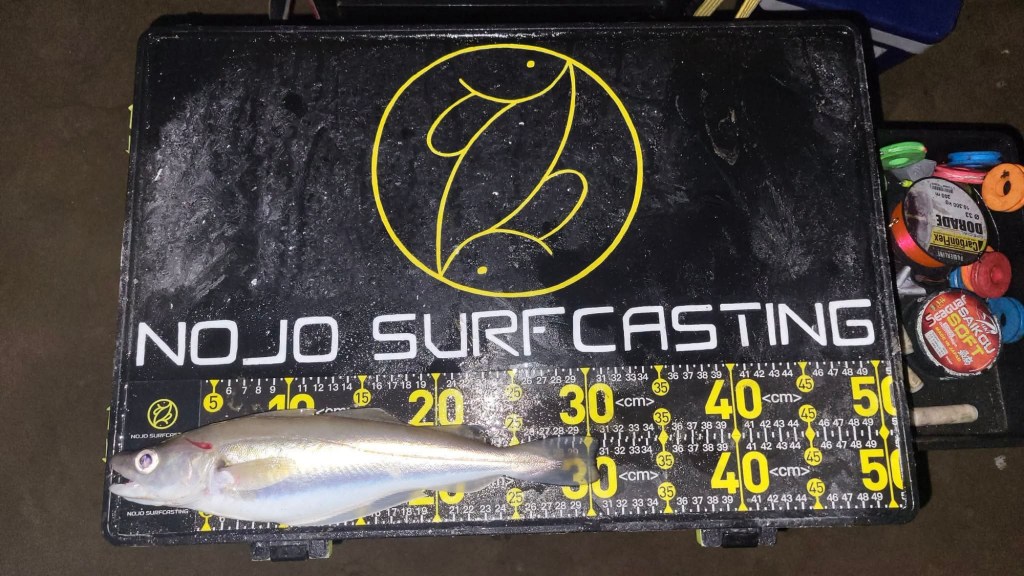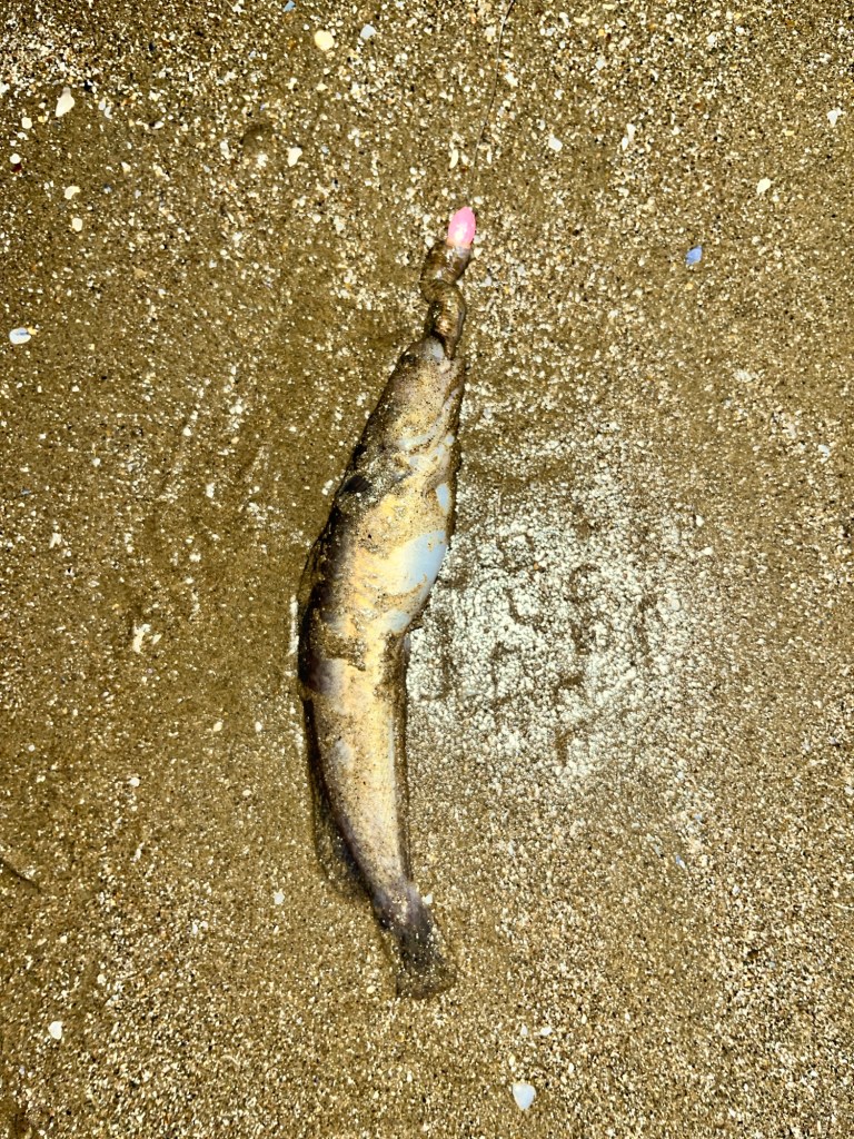 Arriver 1h avant le plein mer ou j’ai une touche plus sérieuse encore sur mon trainard ou un merlan de 31cm se fera piquer.