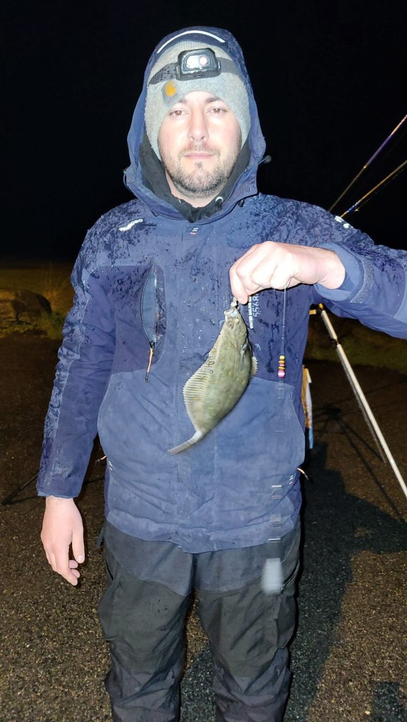 La première touche ne tarde pas, ça ne lutte que très peu. Une plie de 27 cm se pique.