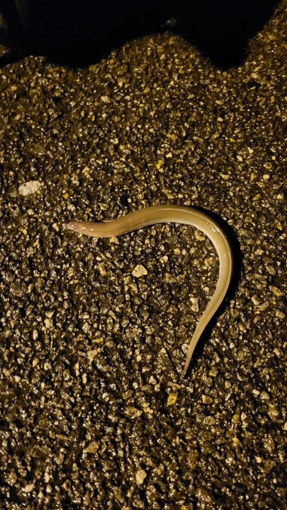 Après plusieurs touches sans suites ou ratés, une anguille se laisse tenter par nos appâts.